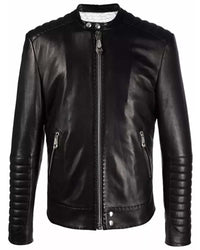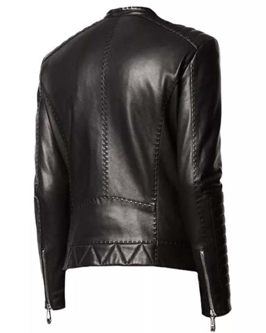 Mens Black Quilted Leather Jacket Cafe Racer Sale
