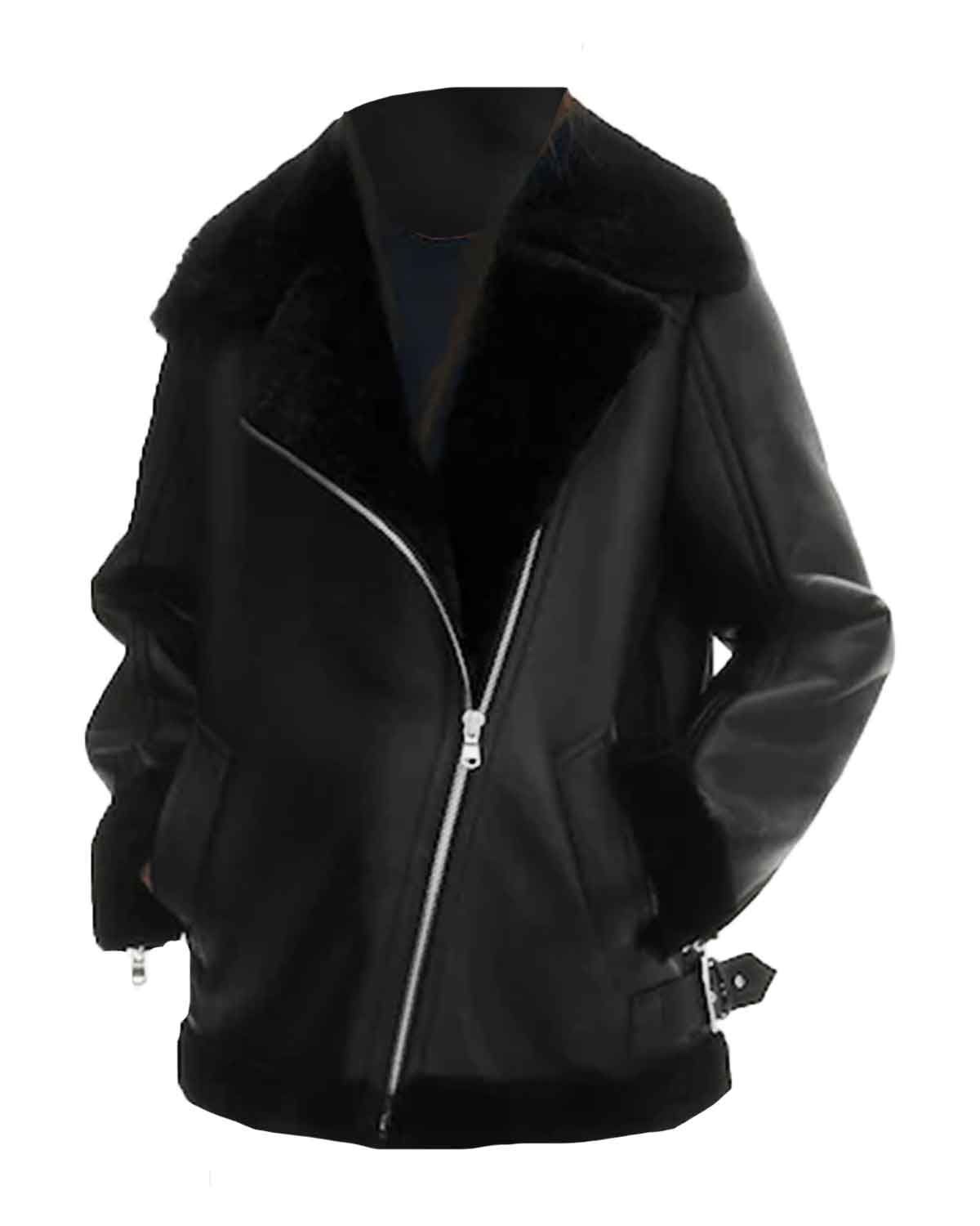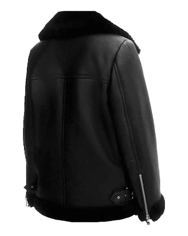 Mens Black Real Leather Aviator Jacket - XS / Black