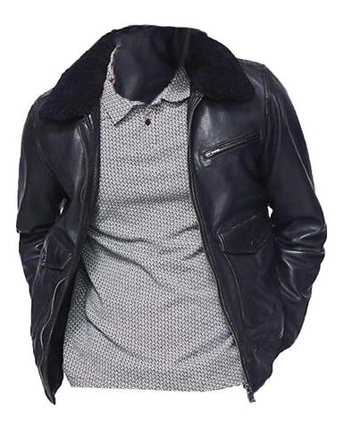 Bomber Black Mens Jacket with Sherpa Collar Sale