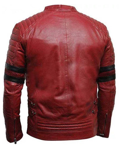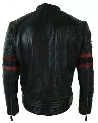 Mens Cafe Racer Retro Biker Red & Black Stripe Motorcycle Leather Jacket Sale