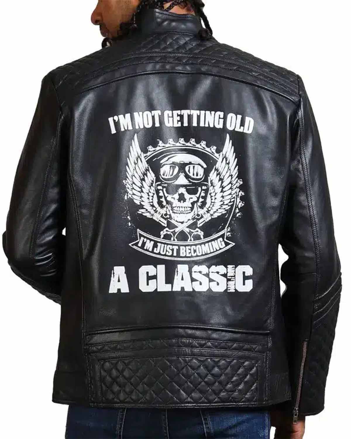 Classic Men Black Quilted Motorcycle Leather Jacket Sale