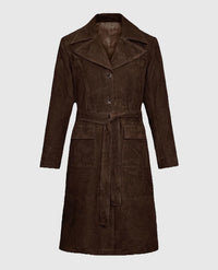 Dark Brown Suede Alpine Leather Long Coat For Women - XS