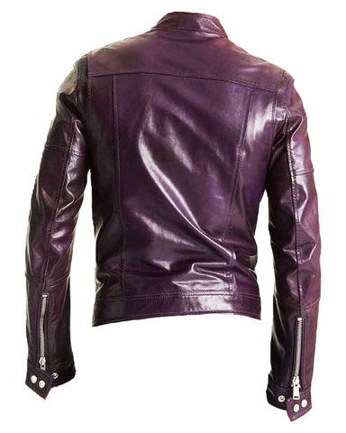 Mens Motorcycle Casual Wear Faux Leather Purple Jacket Sale
