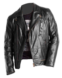 Mens Asymmetrical Black Leather Motorcycle Jacket - XS / Black
