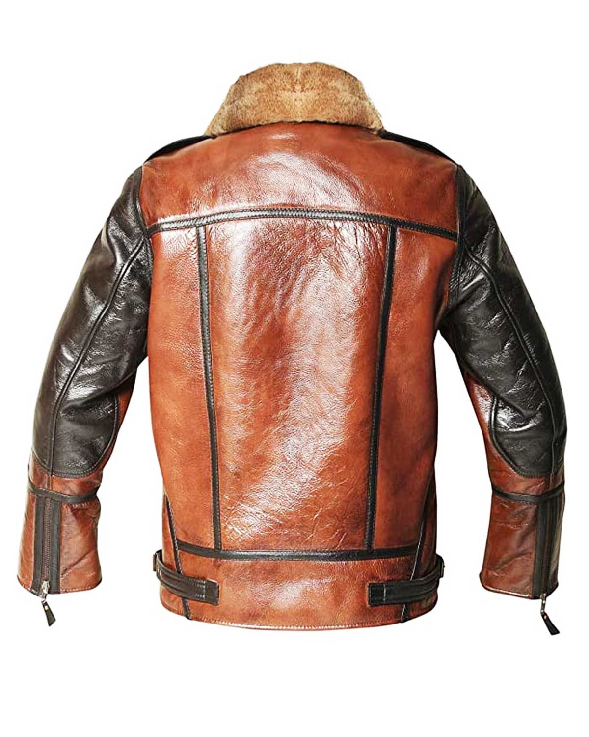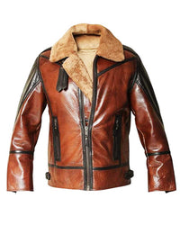Introducing our Mens B3 Shearling Aviator Distressed Jacket, a fusion of style and rugged charm. Crafted from real sheepskin leather with faux fur lining, this jacket promises comfort in every wear.