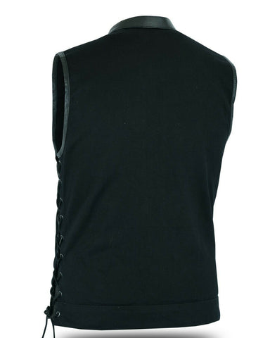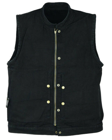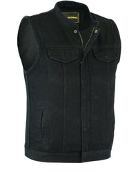 Mens Biker Denim Black Vest with Dual inside Gun Pockets - Black / XS