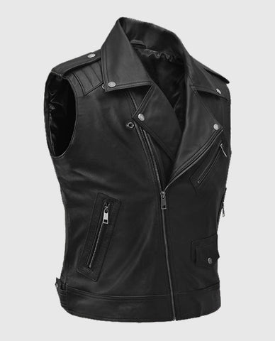Men's Black Bikers Quilted Leather Vest Sale