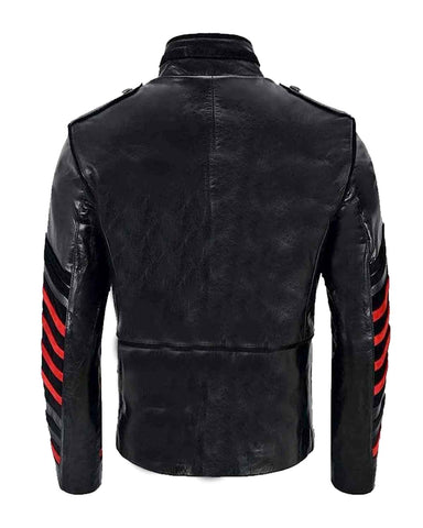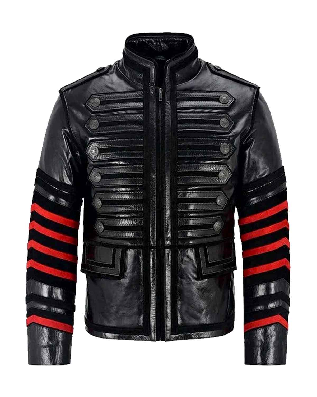 Mens Black Military Style Real Leather Jacket - XS / Black