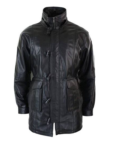 Introducing our Long Black Duffle Coat for Men, a timeless piece that seamlessly combines classic style and functionality. Crafted from genuine sheepskin leather, this coat is the epitome of rugged sophistication.
