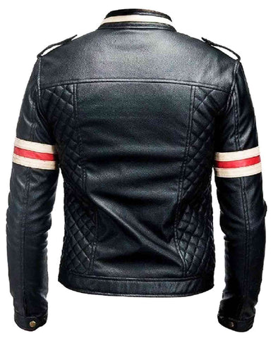 Mens Leather Jacket with Red and Beige Stripes Sale