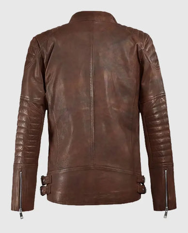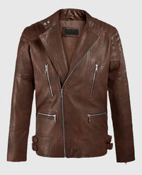 Men's Moto Shotgun Spanish Brown Leather Jacket - XS