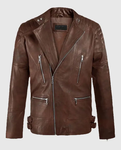 Men's Moto Shotgun Spanish Brown Leather Jacket Sale