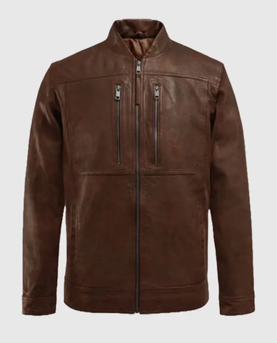 Men's Spanish Brown Thunder Storm Biker Leather Jacket Sale