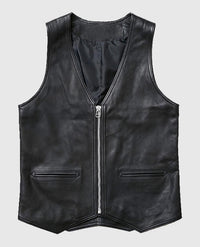 Men's Stylish V-Neck Black Leather Vest Sale