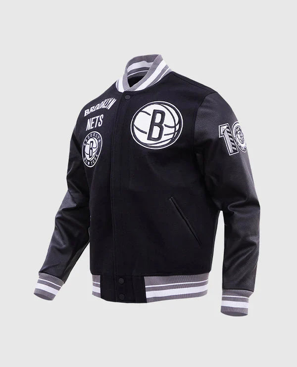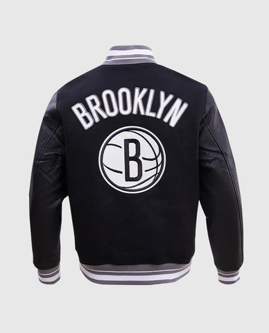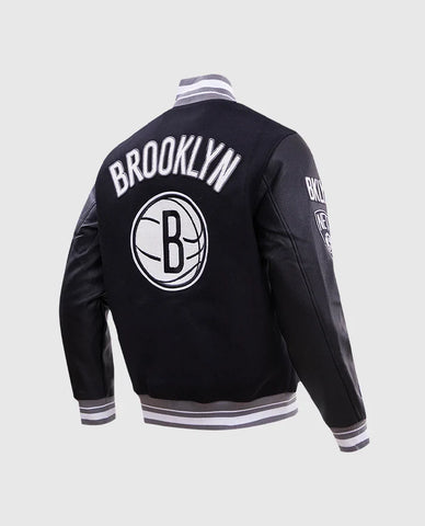 NBA Brooklyn Nets Men's Rib Wool Black Varsity Jacket Sale