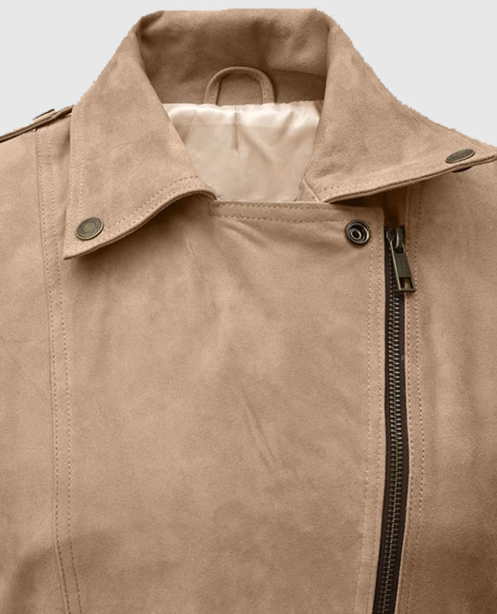 Women's Dusty Beige Suede Leather Fringes Jacket Sale