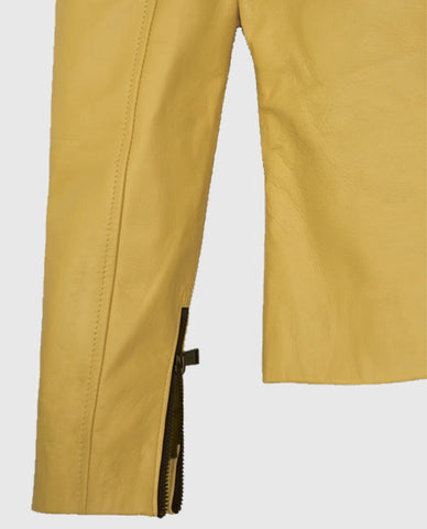 Women's Yellow Leather Moto Jacket - XS