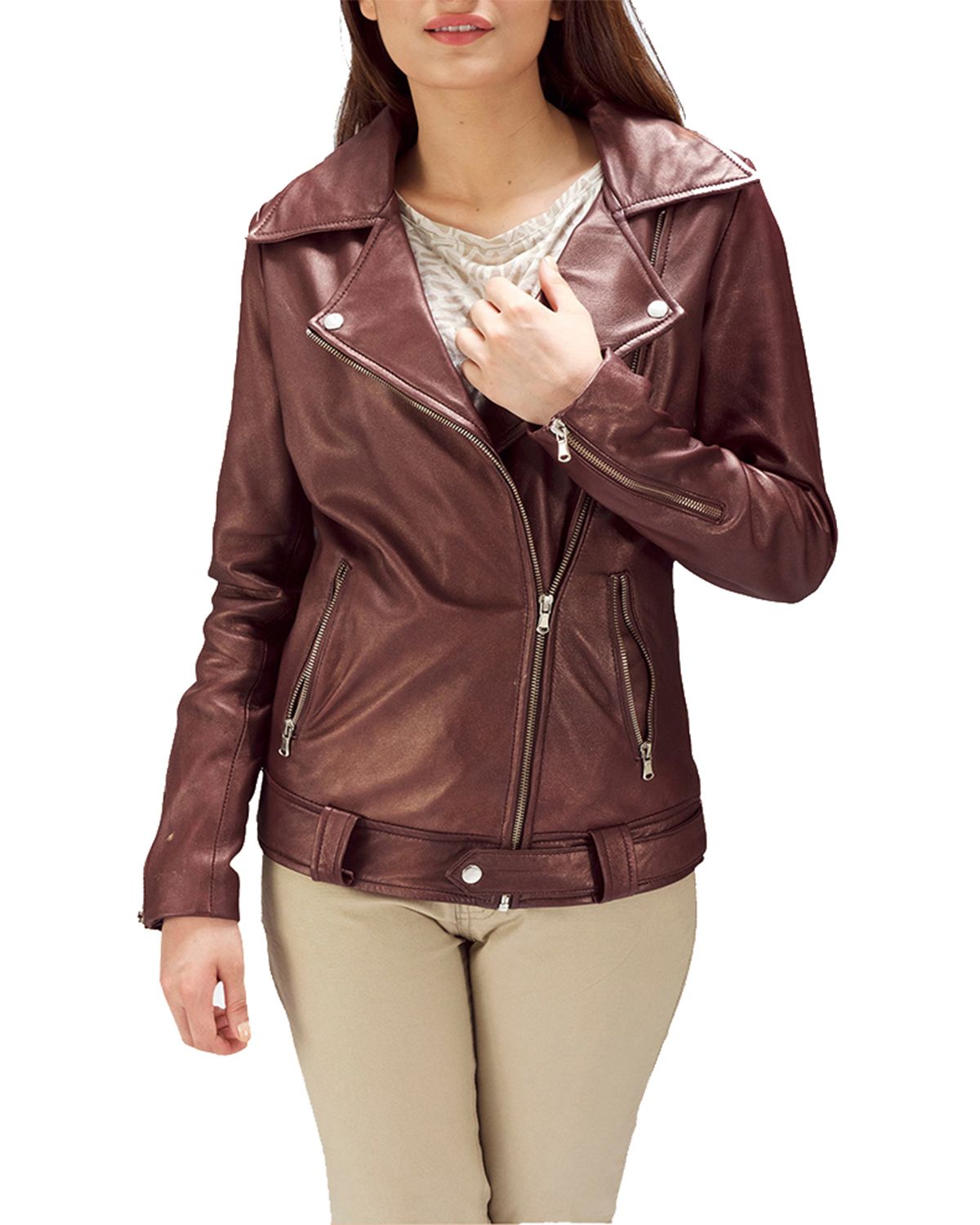 Womens Maroon Biker Leather Jacket - Maroon / XS