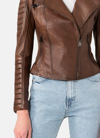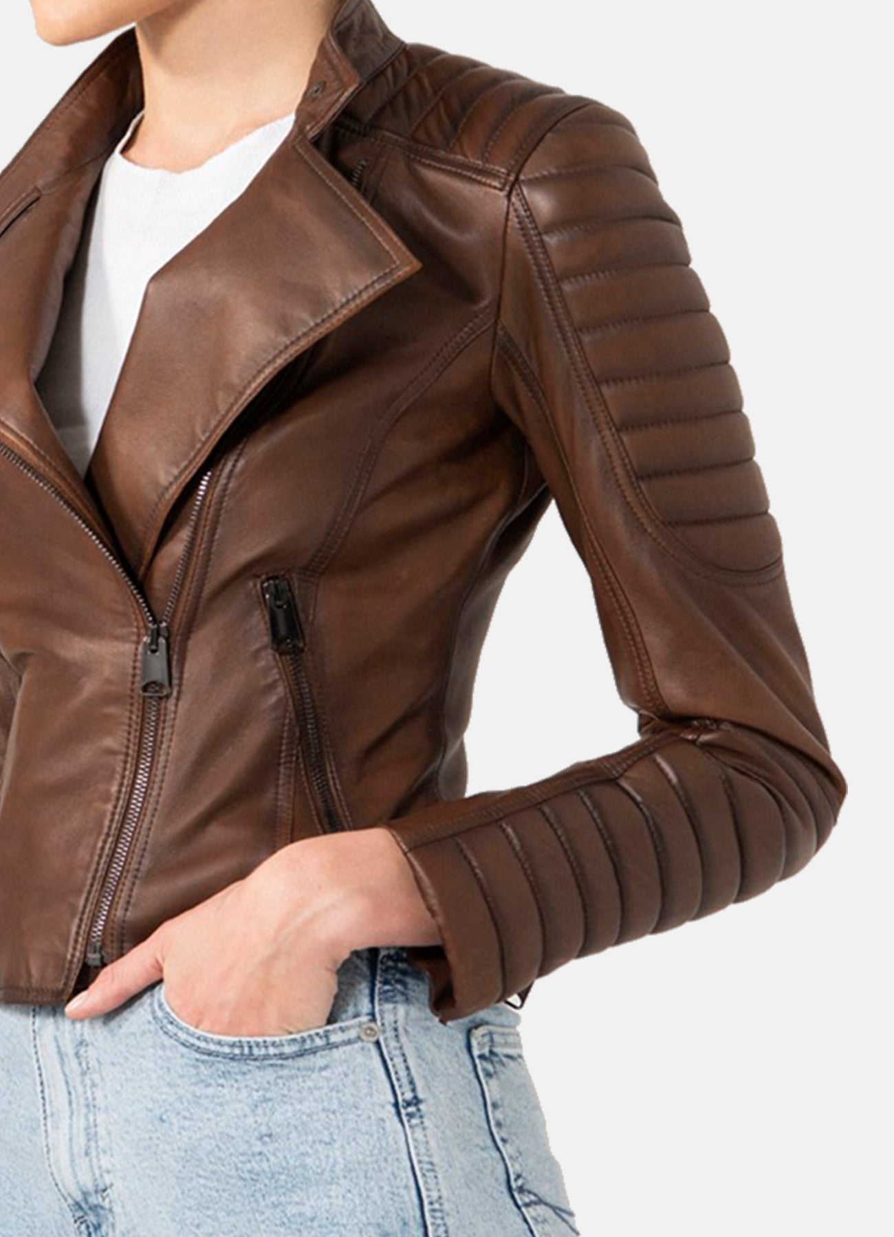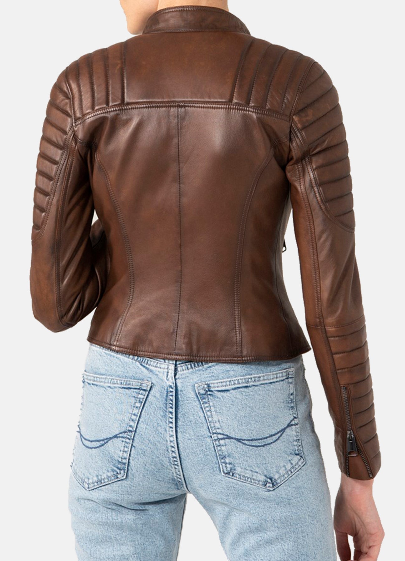 Womens Quilted Brown Biker Leather Jacket - X-Small / Brown