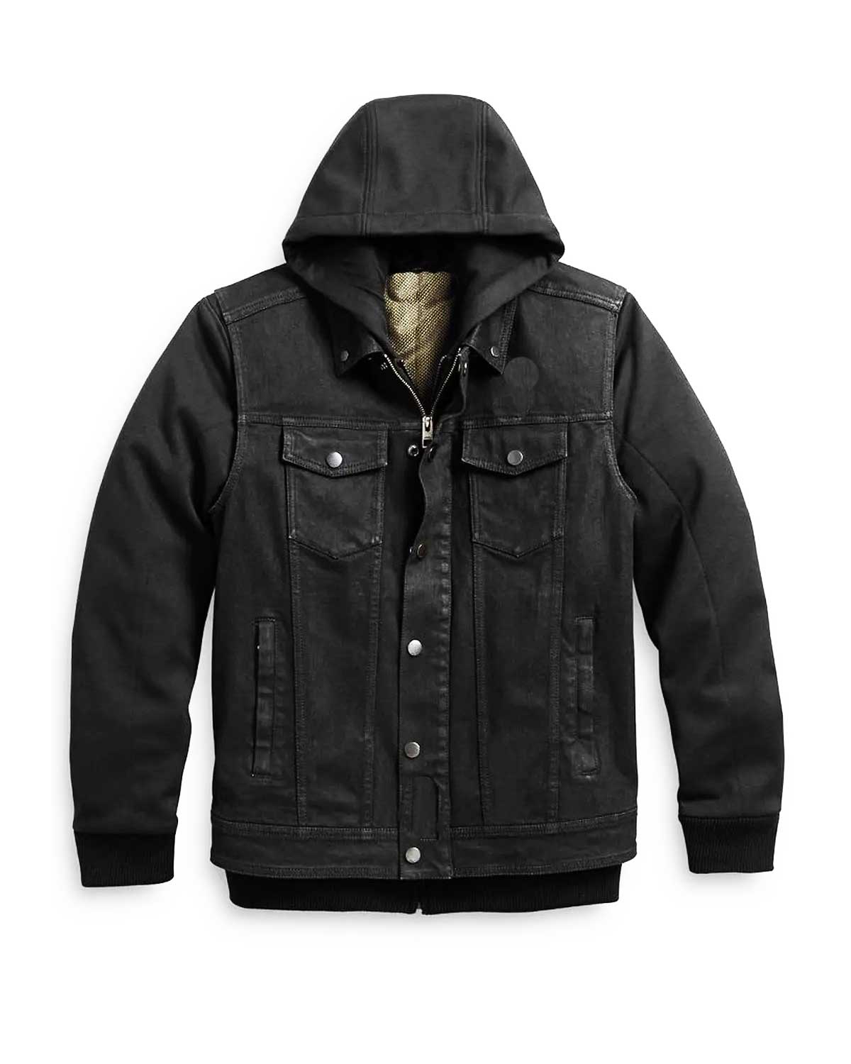 Rev up your style with the Men’s 3 1 Black Denim Motorcycle Jacket. Crafted from durable denim, this jacket offers a versatile three-in-one design. The snap-tab hooded collar, full sleeves, and rib-knitted cuffs provide both comfort and style. The fine-quality stitching ensures durability for your adventurous rides.