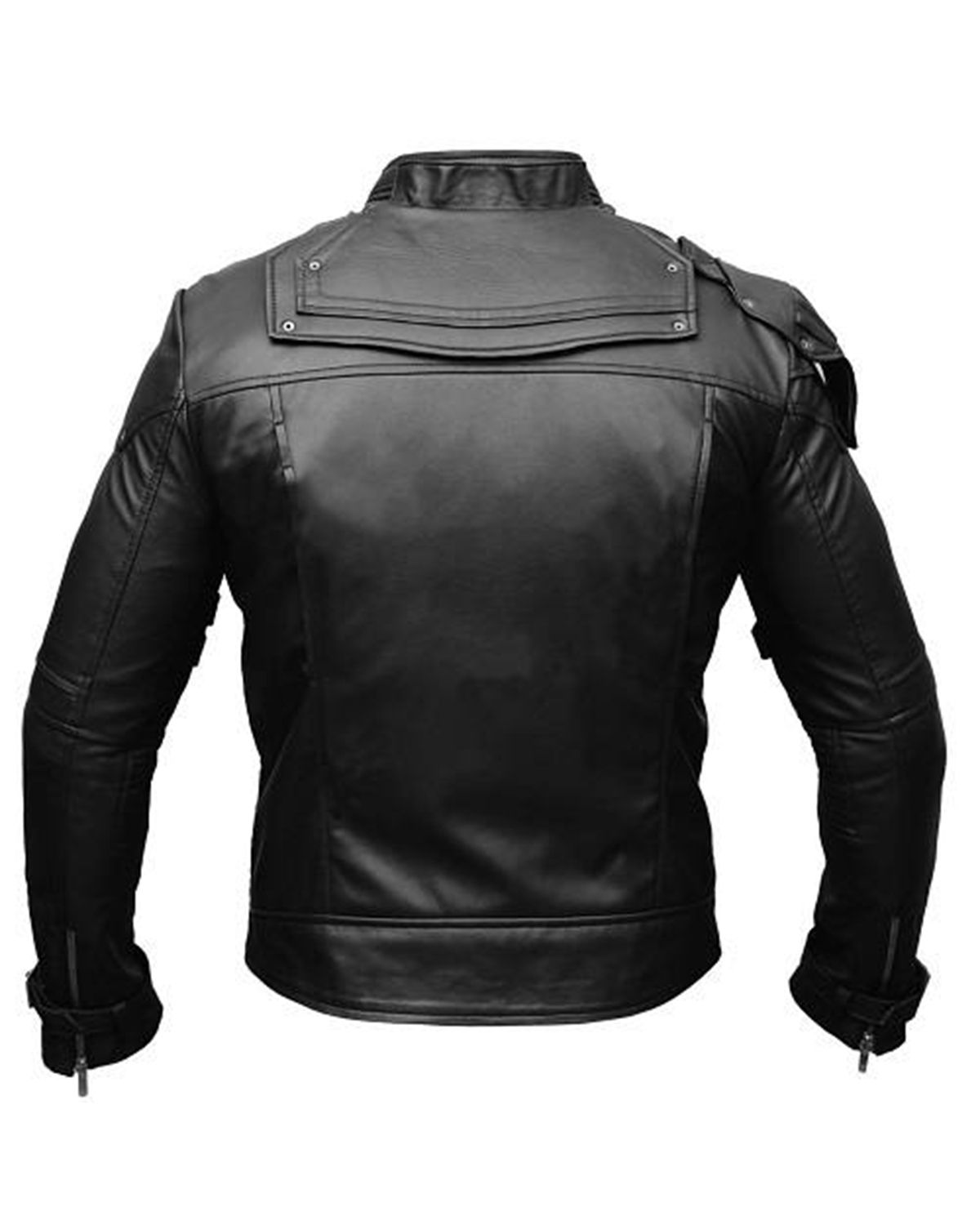 Mens Black Short Collar Biker Genuine Sheepskin Leather Jacket Sale