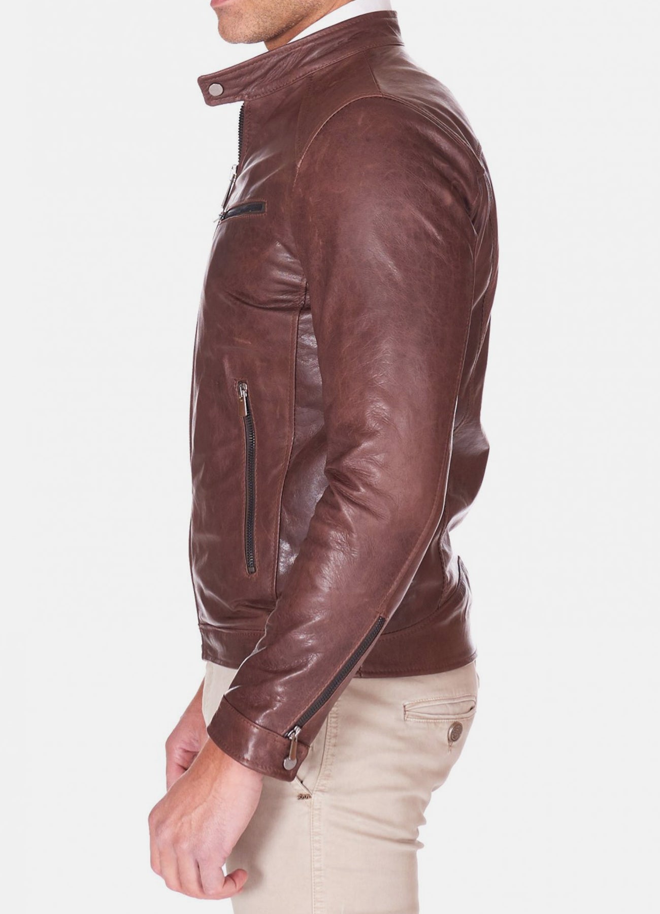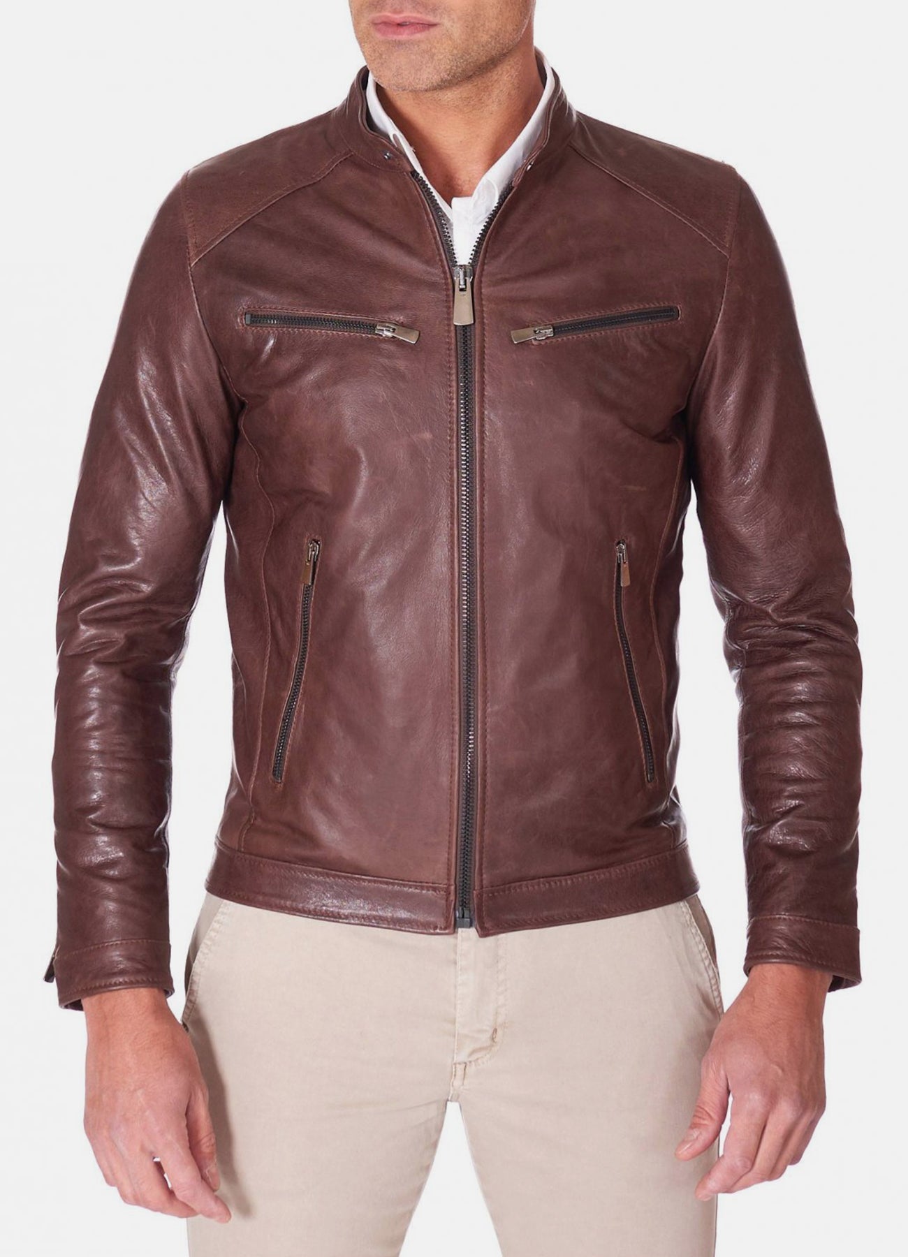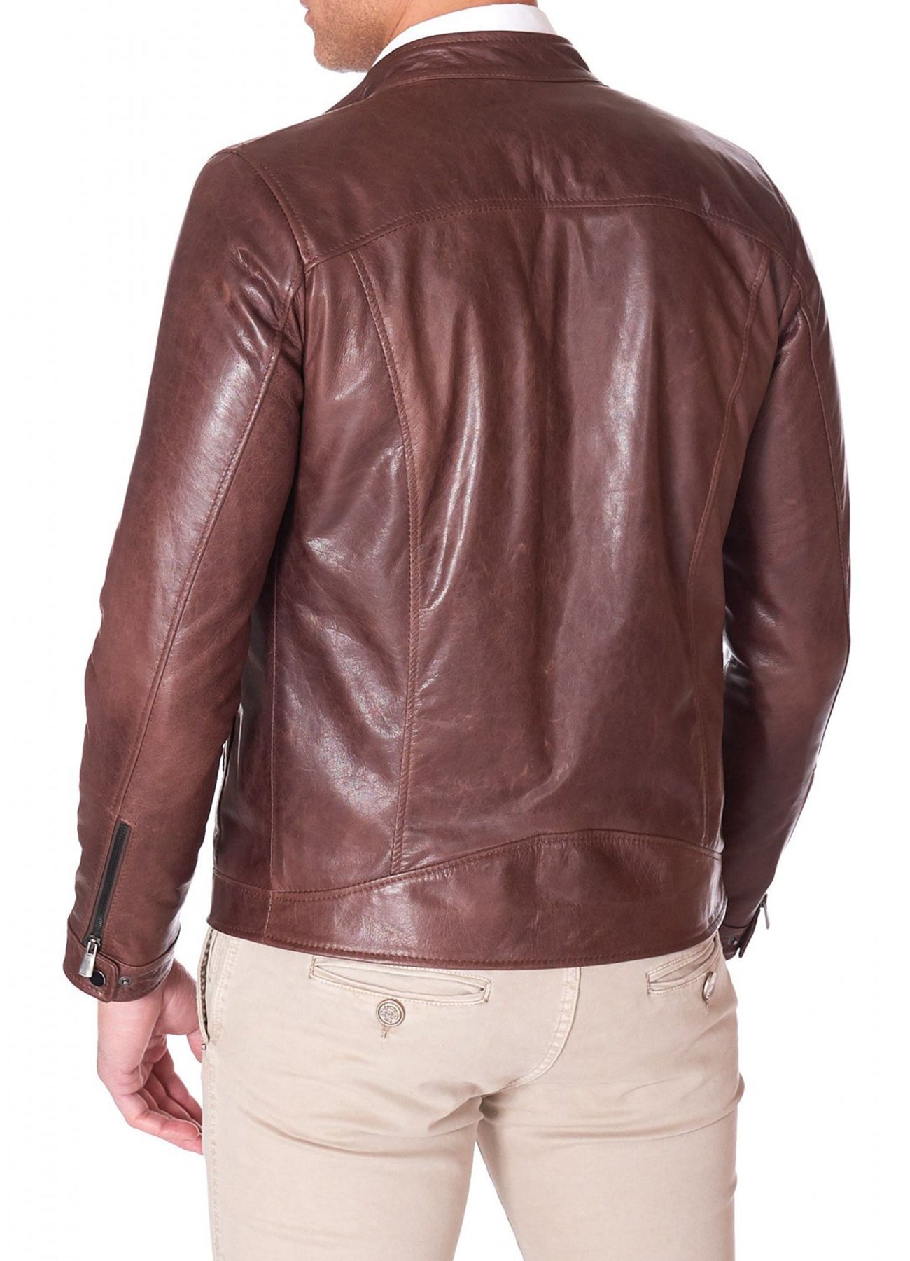 Mens Casual Style Brown Biker Leather Jacket Sale