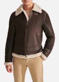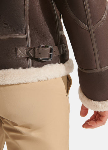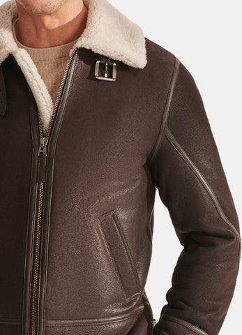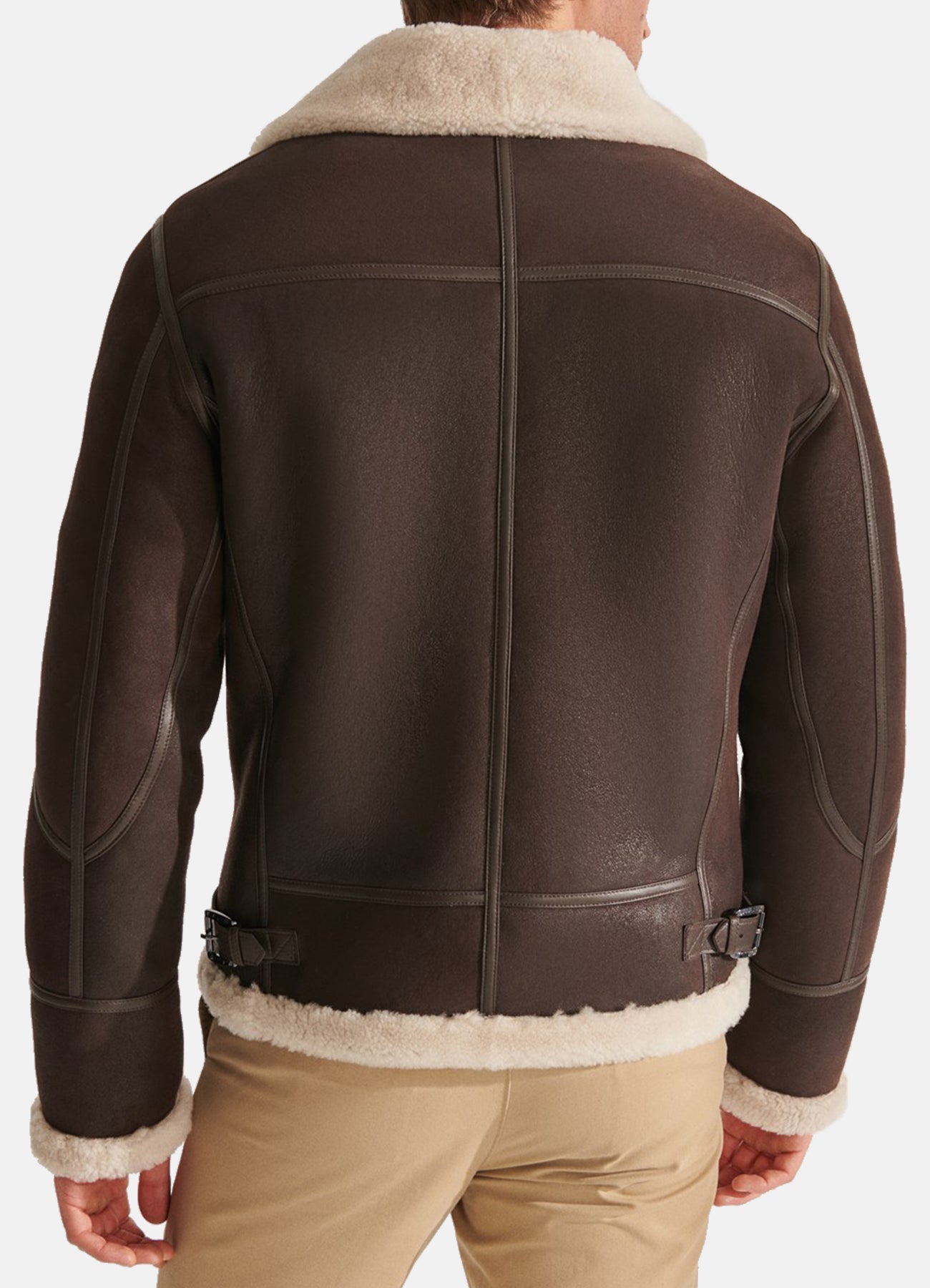 Mens Chocolate Brown Shearling Leather Jacket Sale