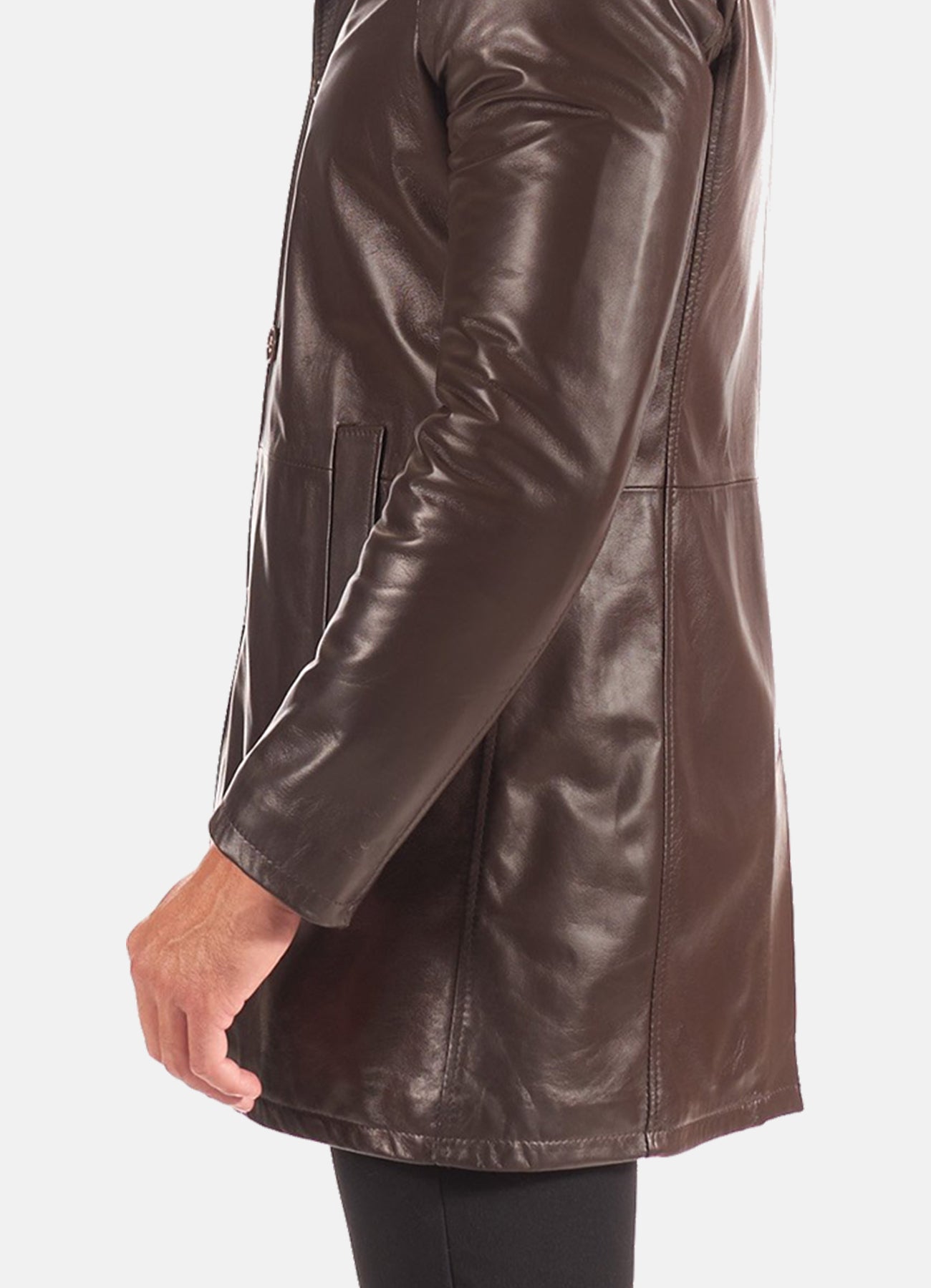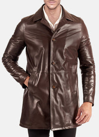 With internal viscose lining, this coat ensures a smooth fit and optimal comfort. Whether it's a formal event or a casual outing, the Mens Classic Brown Mid-Length Leather Coat effortlessly elevates your look. Redefine your winter wardrobe with this exceptional piece, where classic meets contemporary in every detail.