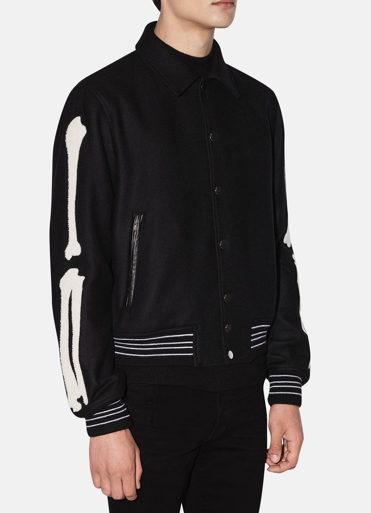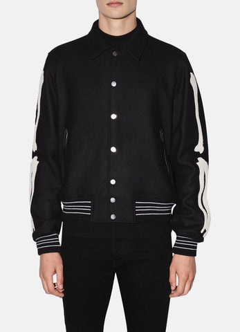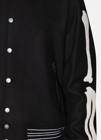 Mens Deep Black Bone Design Varsity Jacket Sale