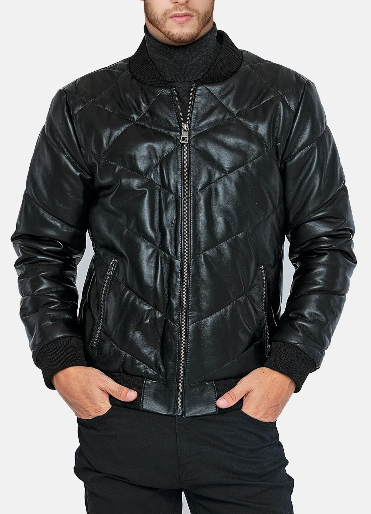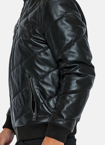 Mens Diamond Stitched Style Leather Bomber Jacket Sale