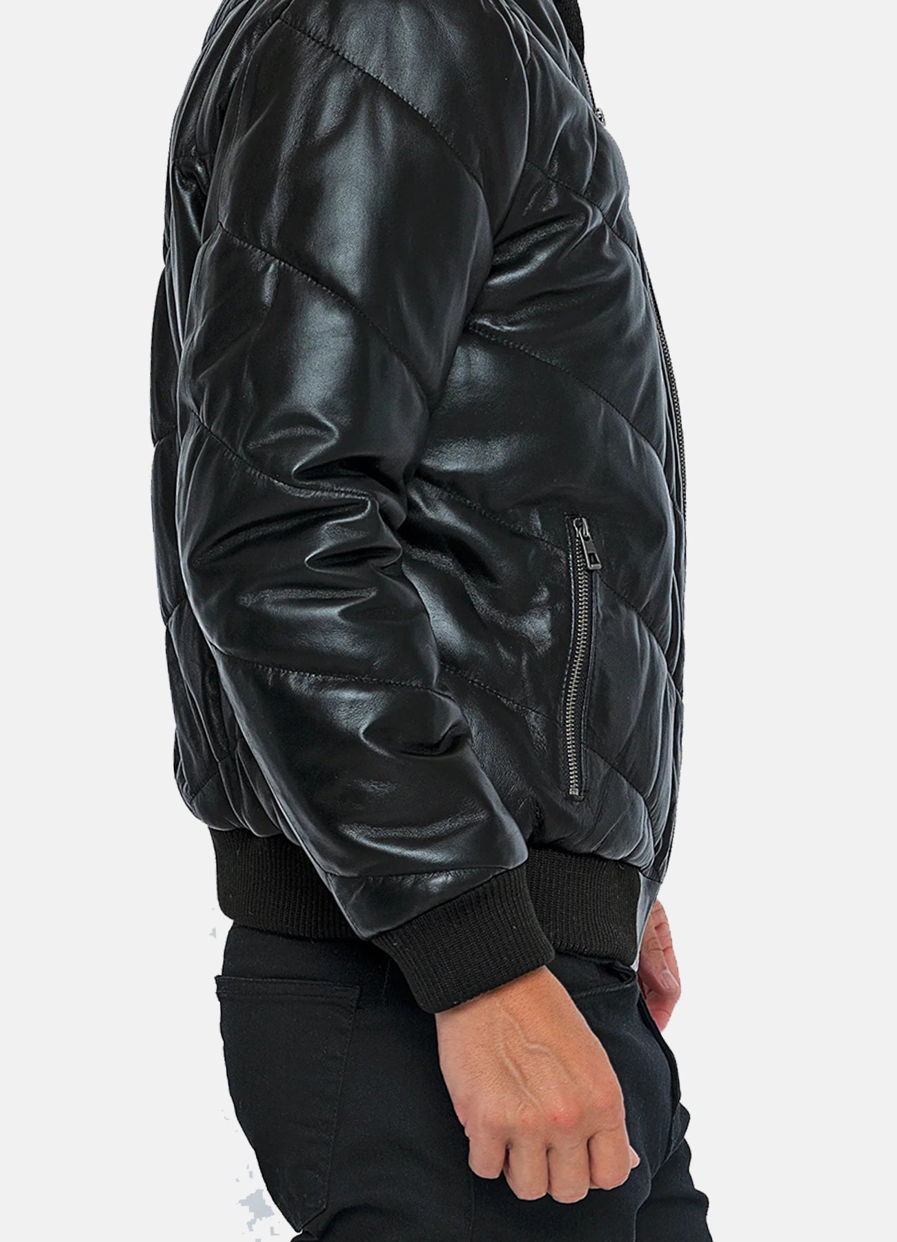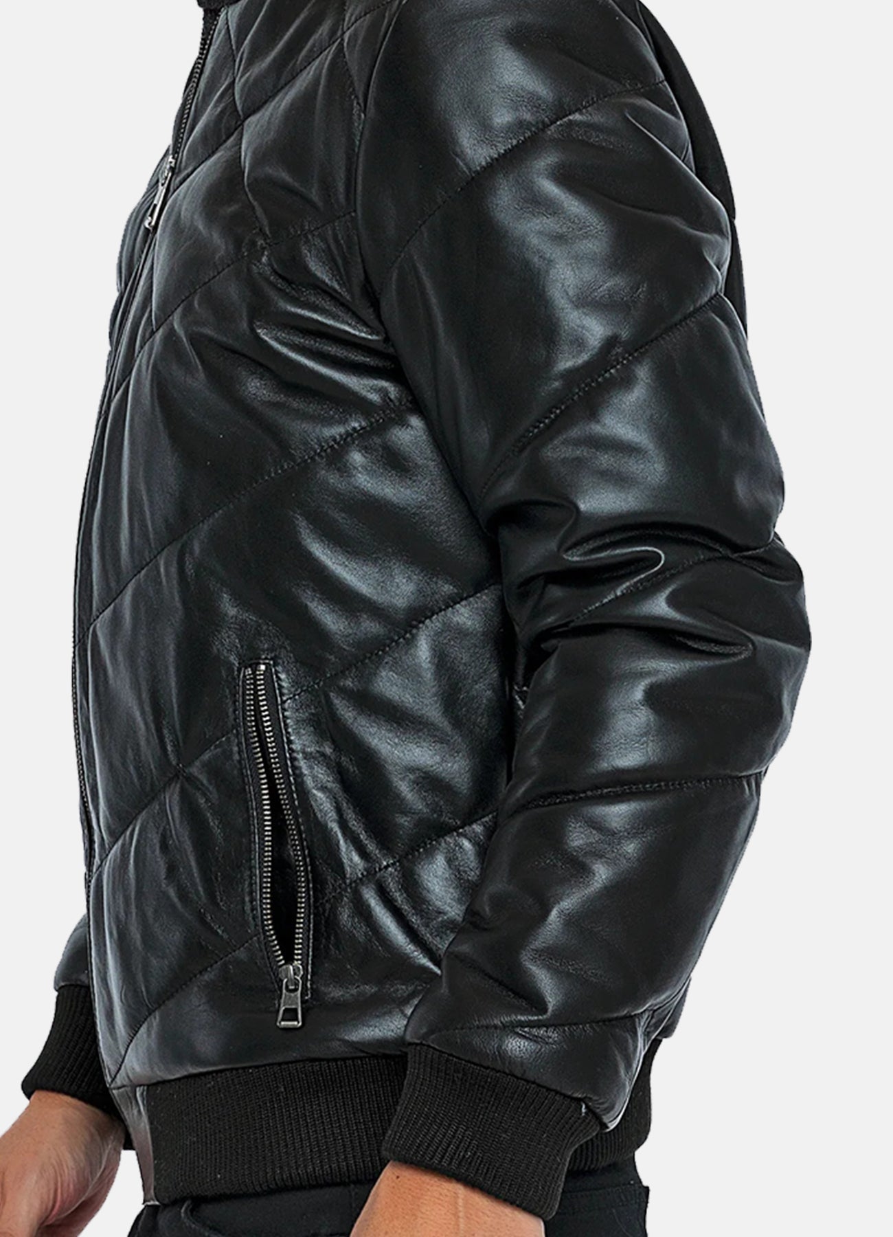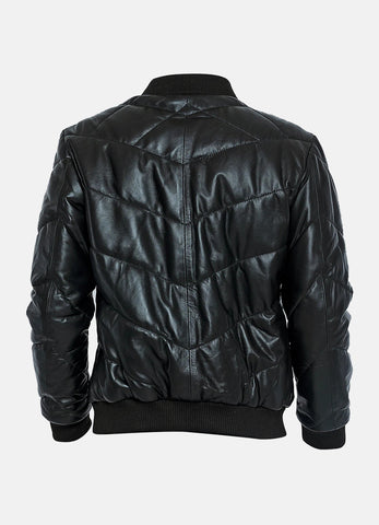 Mens Diamond Stitched Style Leather Bomber Jacket - X-Small / Black