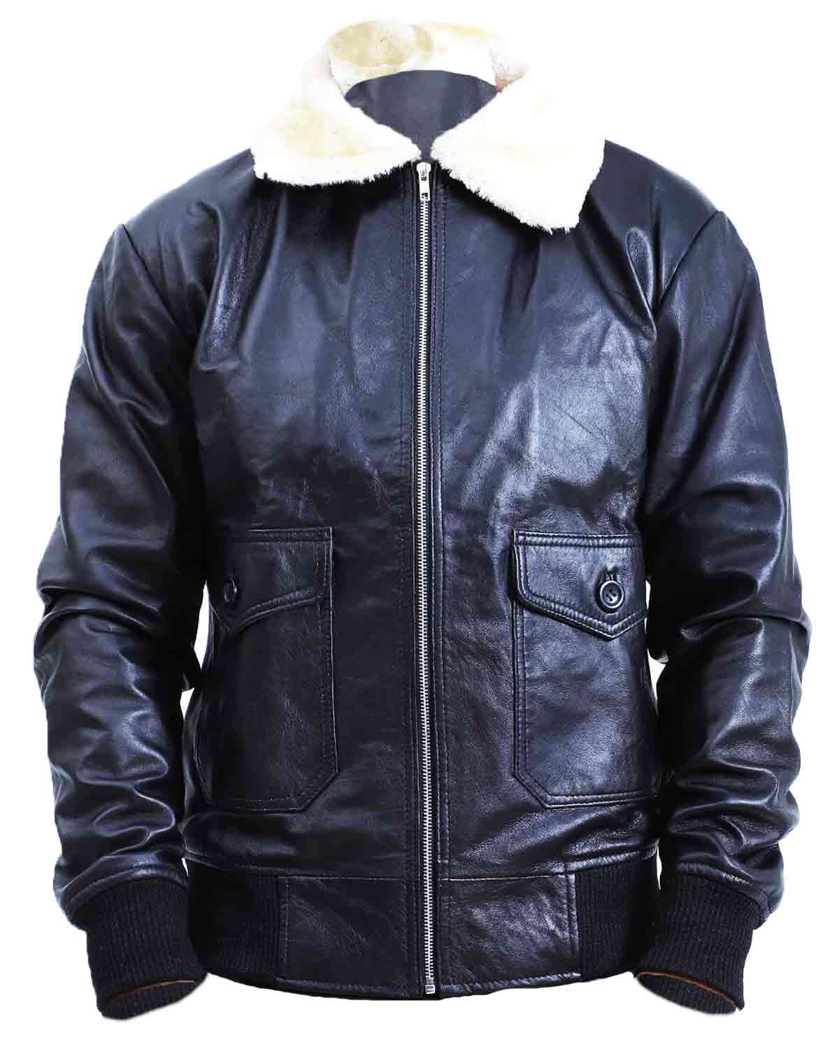 Introducing our Mens Flight Aviator Bomber Jacket a symbol of sophistication and timeless allure. Handcrafted from genuine leather, this jacket is a true embodiment of quality and style. The sleek black color adds an air of mystery and versatility to your wardrobe, making it a perfect choice for any occasion. The front polyester lining closure exudes a modern aesthetic while ensuring a secure fit.