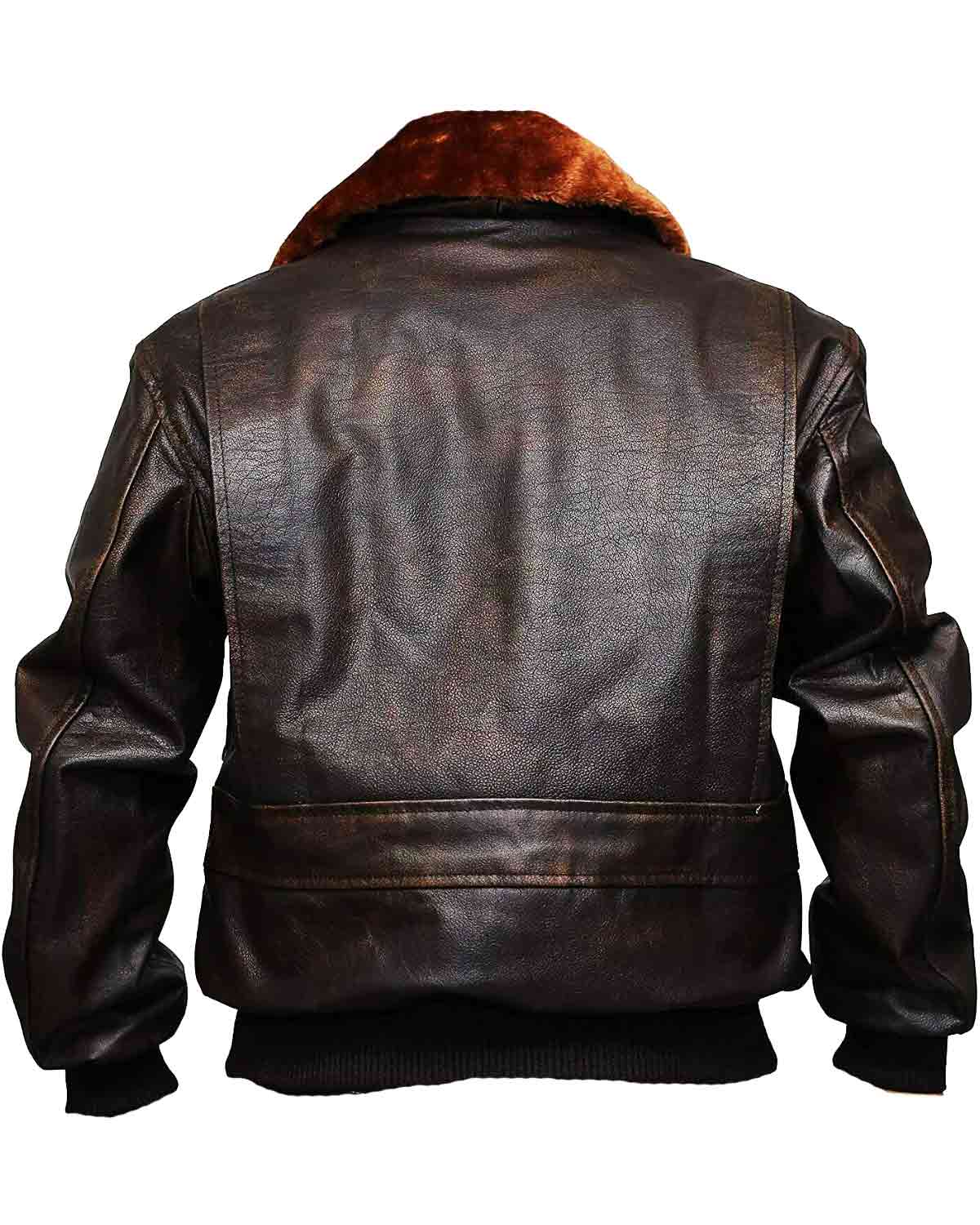 The jacket's soft viscose lining provides comfort and a luxurious feel against the skin. Featuring a fur-style collar, full-length sleeves, and rib-knitted cuffs, this G1 Bomber Leather Jacket effortlessly combines elegance with practicality. With two front flap pockets and two inner pockets, you'll have ample space for your essentials. Embrace a refined and polished look with this remarkable brown leather jacket.