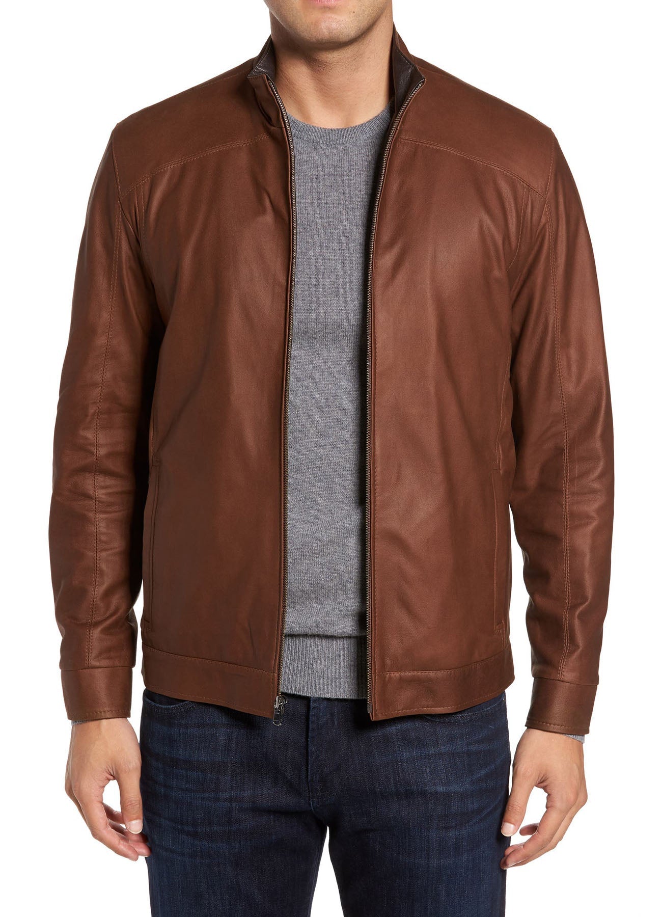 Mens Iconic Brown Lambskin Leather Jacket Sale