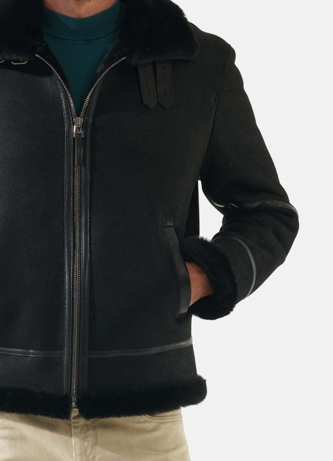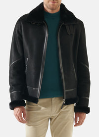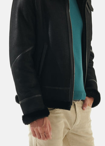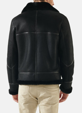 Mens Jet Black Shearling Leather Jacket - X-Small / Black