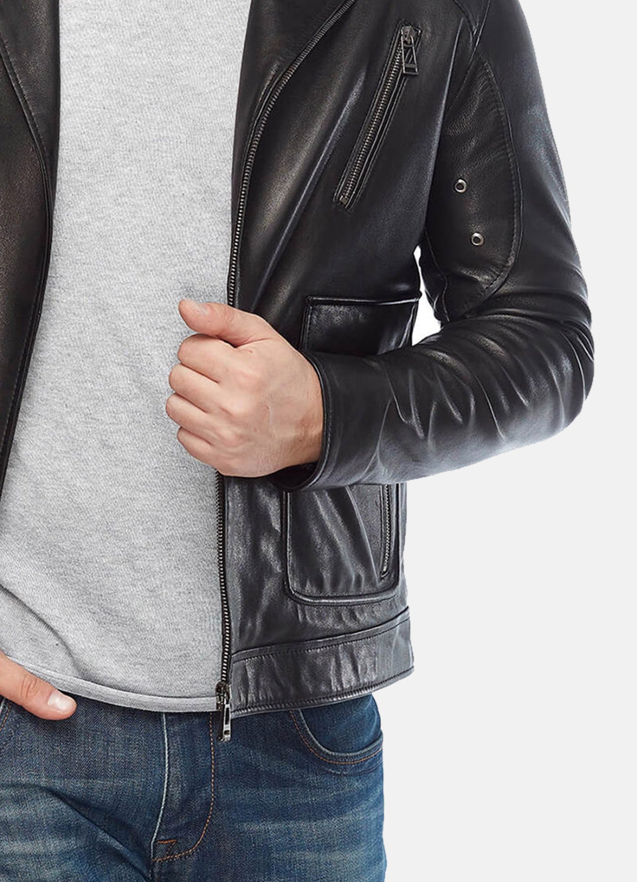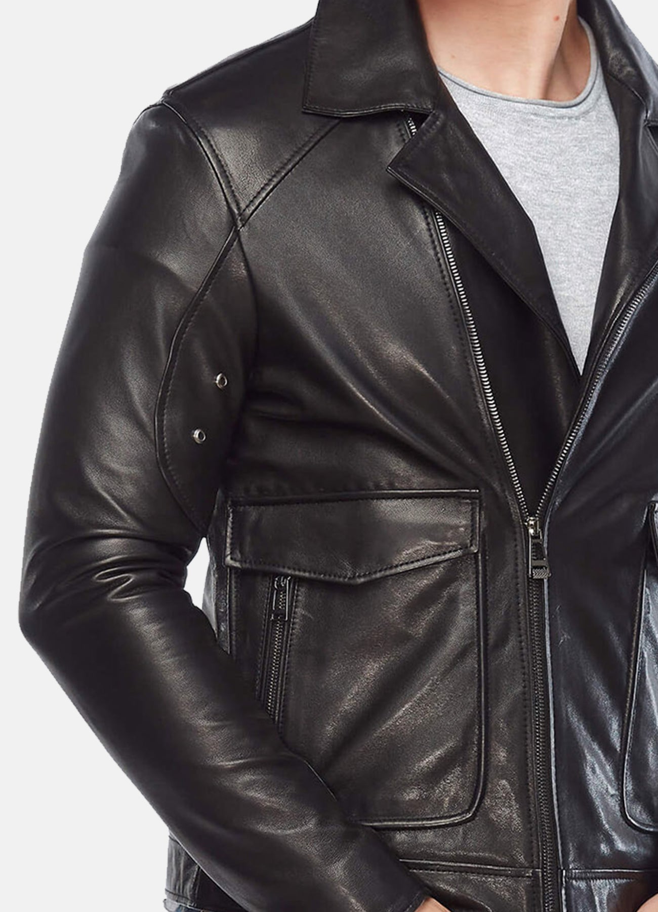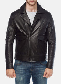 Mens Midnight Black Biker Leather Jacket Sale