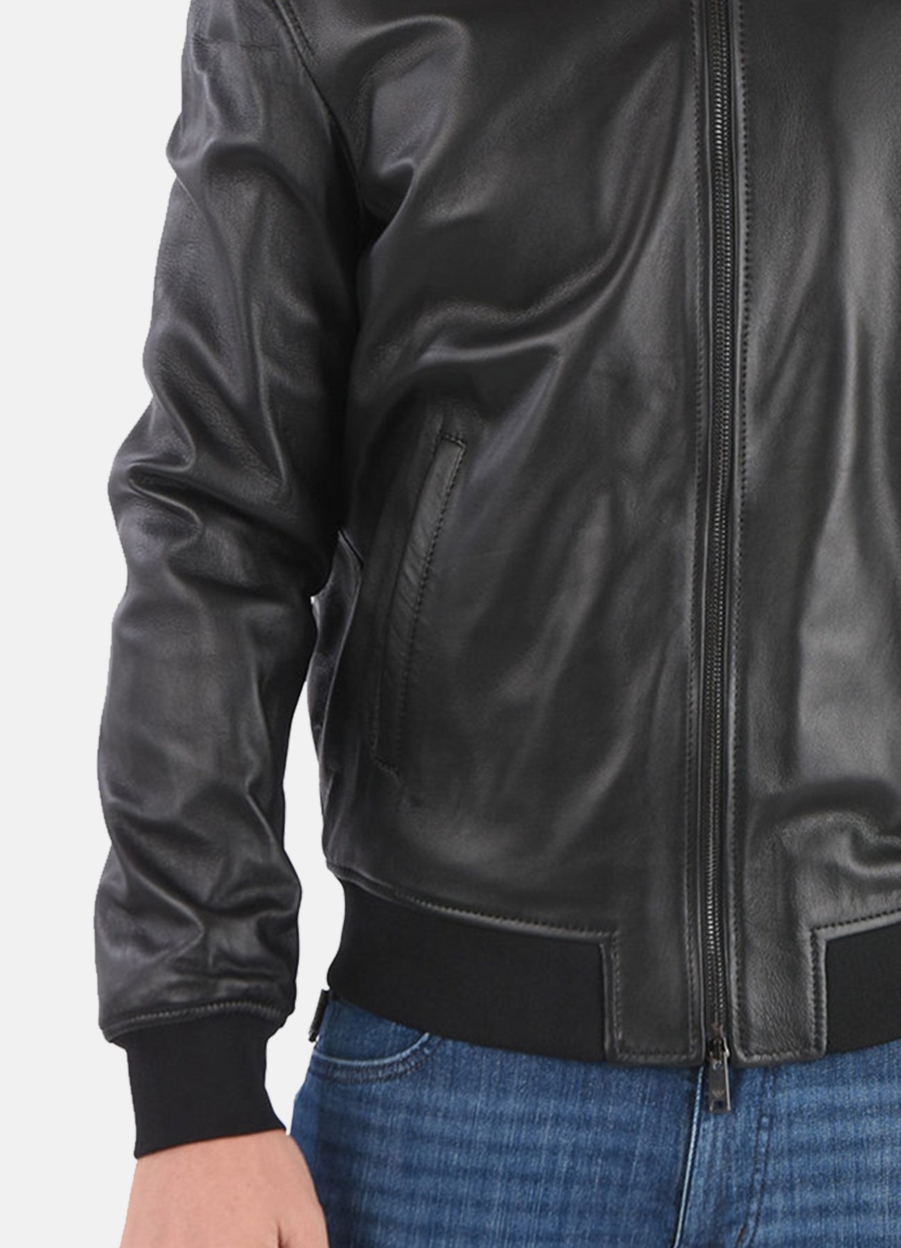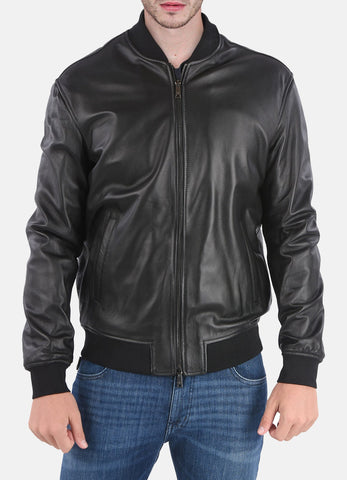Mens Midnight Black Bomber Leather Jacket - X-Small / Black
