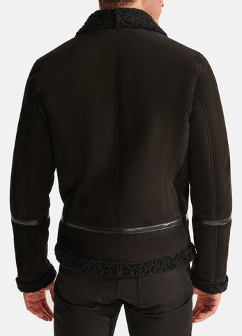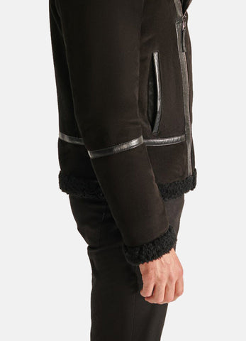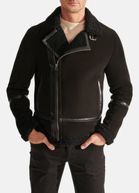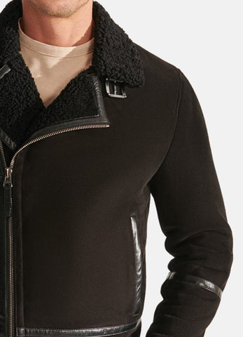 Mens Midnight Black Suede Shearling Leather Jacket Sale