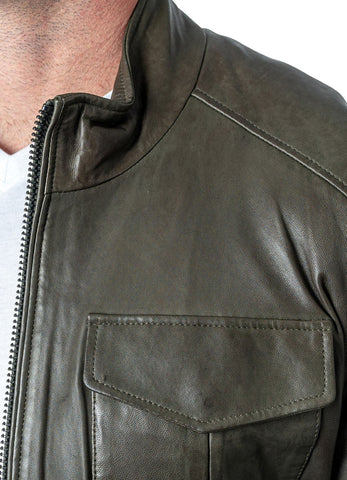Mens Military Style Olive Green Leather Jacket Sale