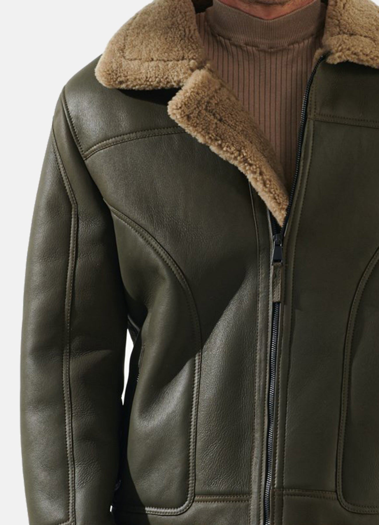 Stay organized with two outside and two inside pockets, while the exquisite craftsmanship ensures durability. From casual outings to formal evenings, this jacket embodies versatility and luxury. Embrace the fusion of fashion and function with our Moss Green Shearling Leather Jacket – where comfort meets impeccable style.