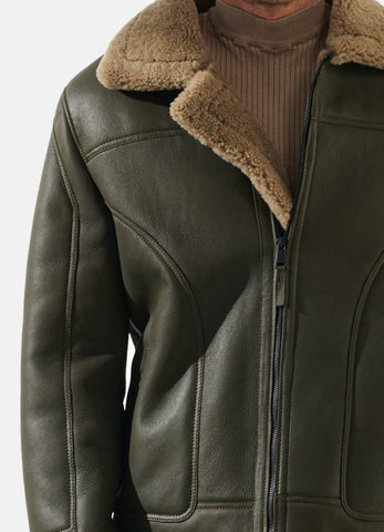 Elevate your winter style with our luxurious Moss Green Shearling Leather Jacket for men. Crafted from premium shearling leather, it exudes sophistication and warmth. The rich moss green hue adds a touch of uniqueness.