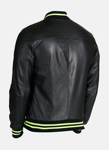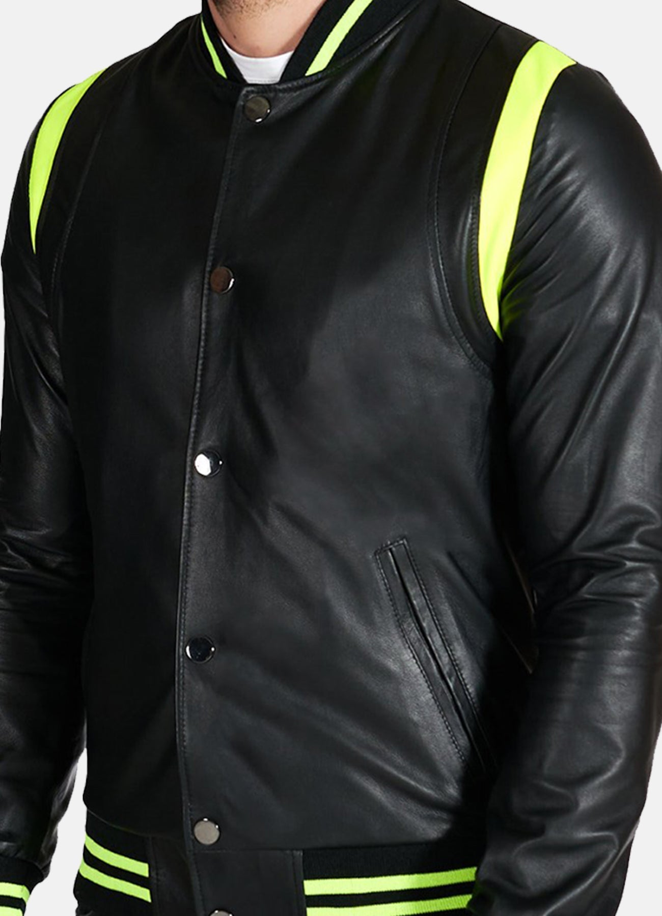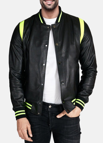 Mens Neon and Black Varsity Leather Jacket - X-Small / Black