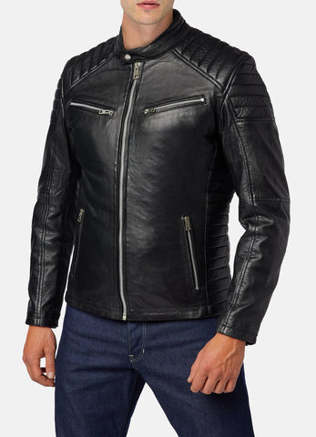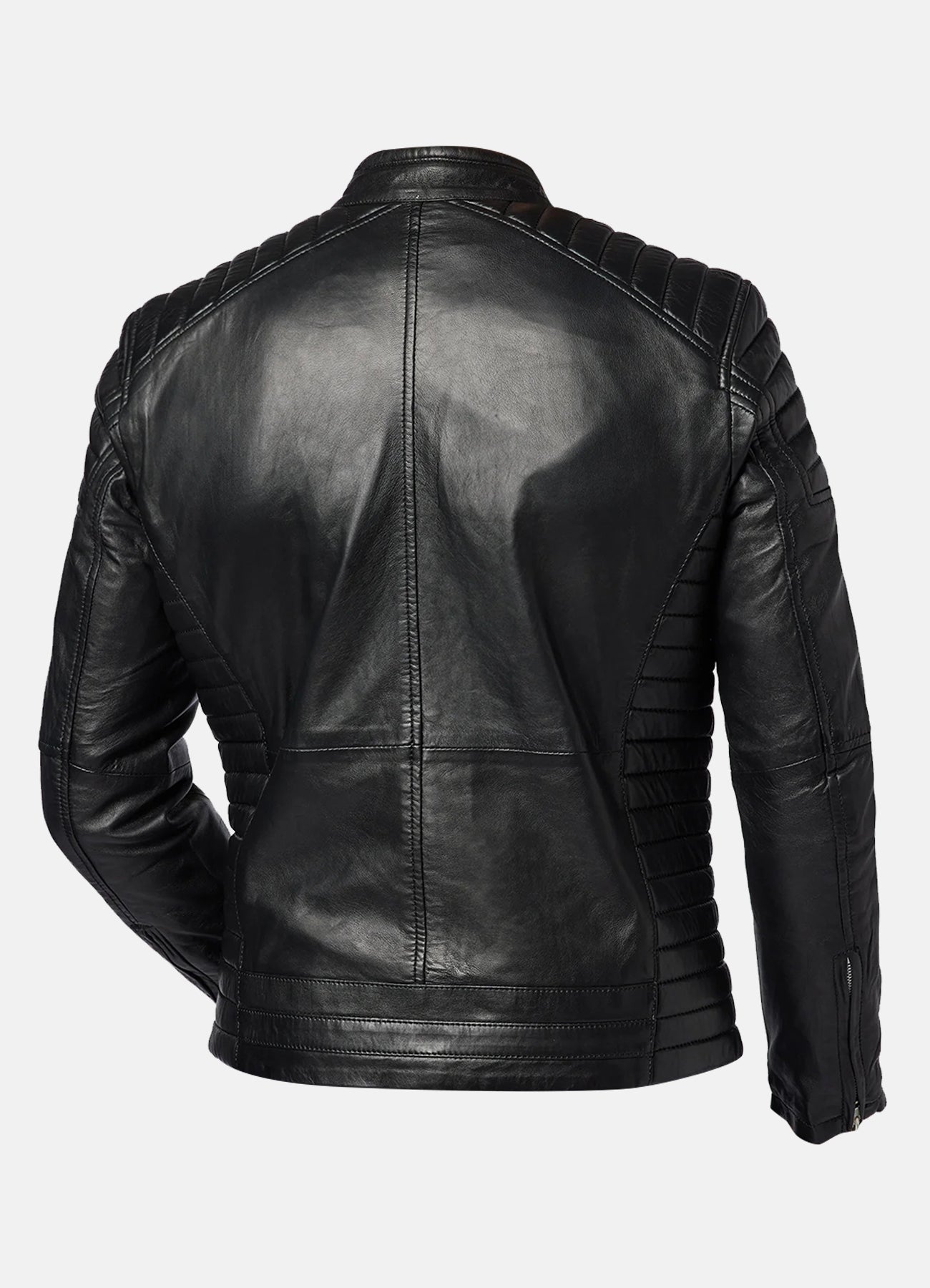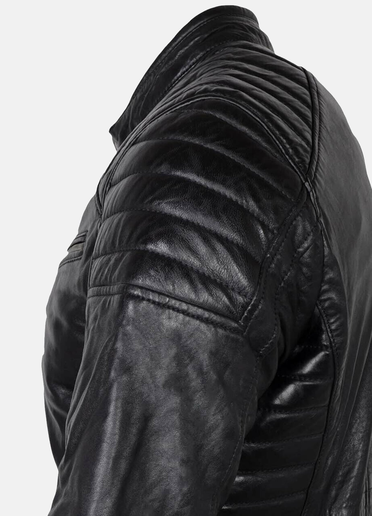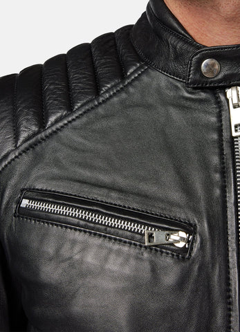 Mens Padded Black Lambskin Leather Jacket - X-Small / Black