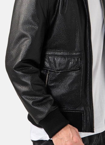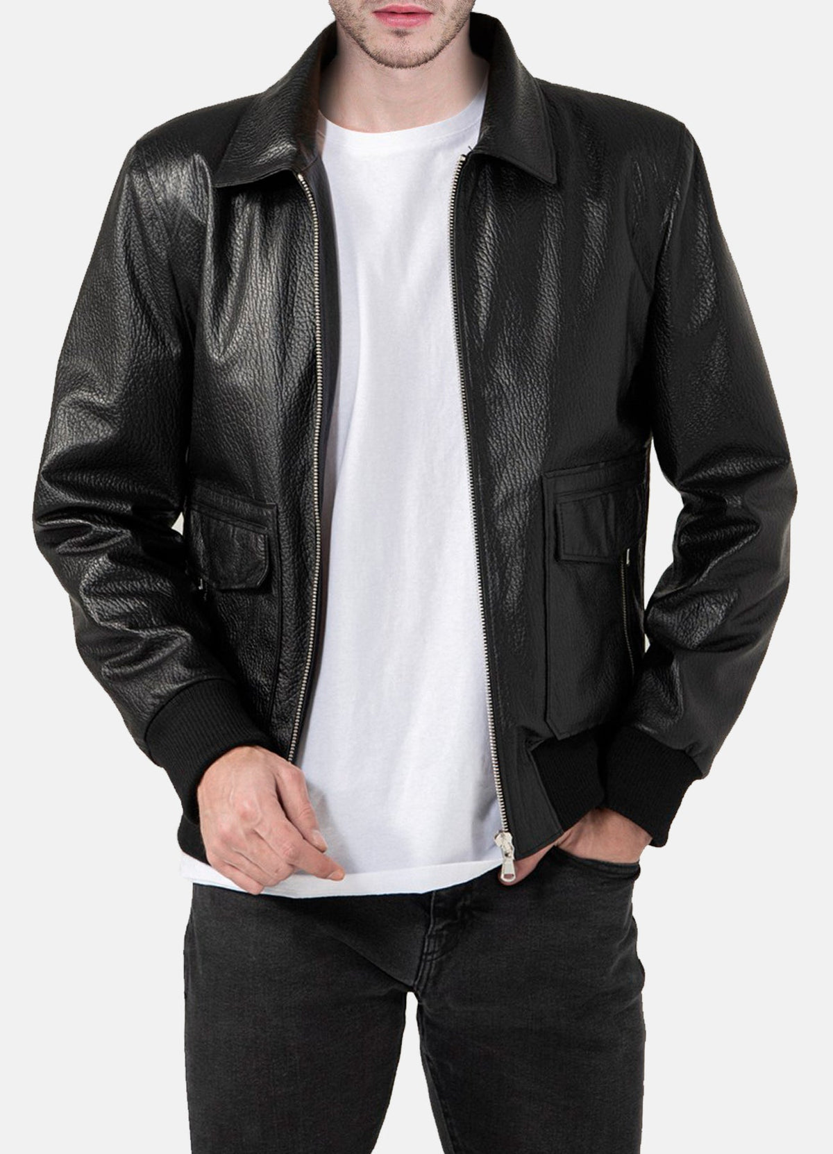 Mens Patterned Black Leather Jacket - X-Small / Black