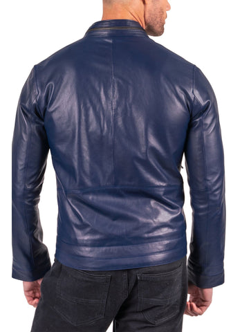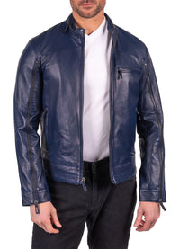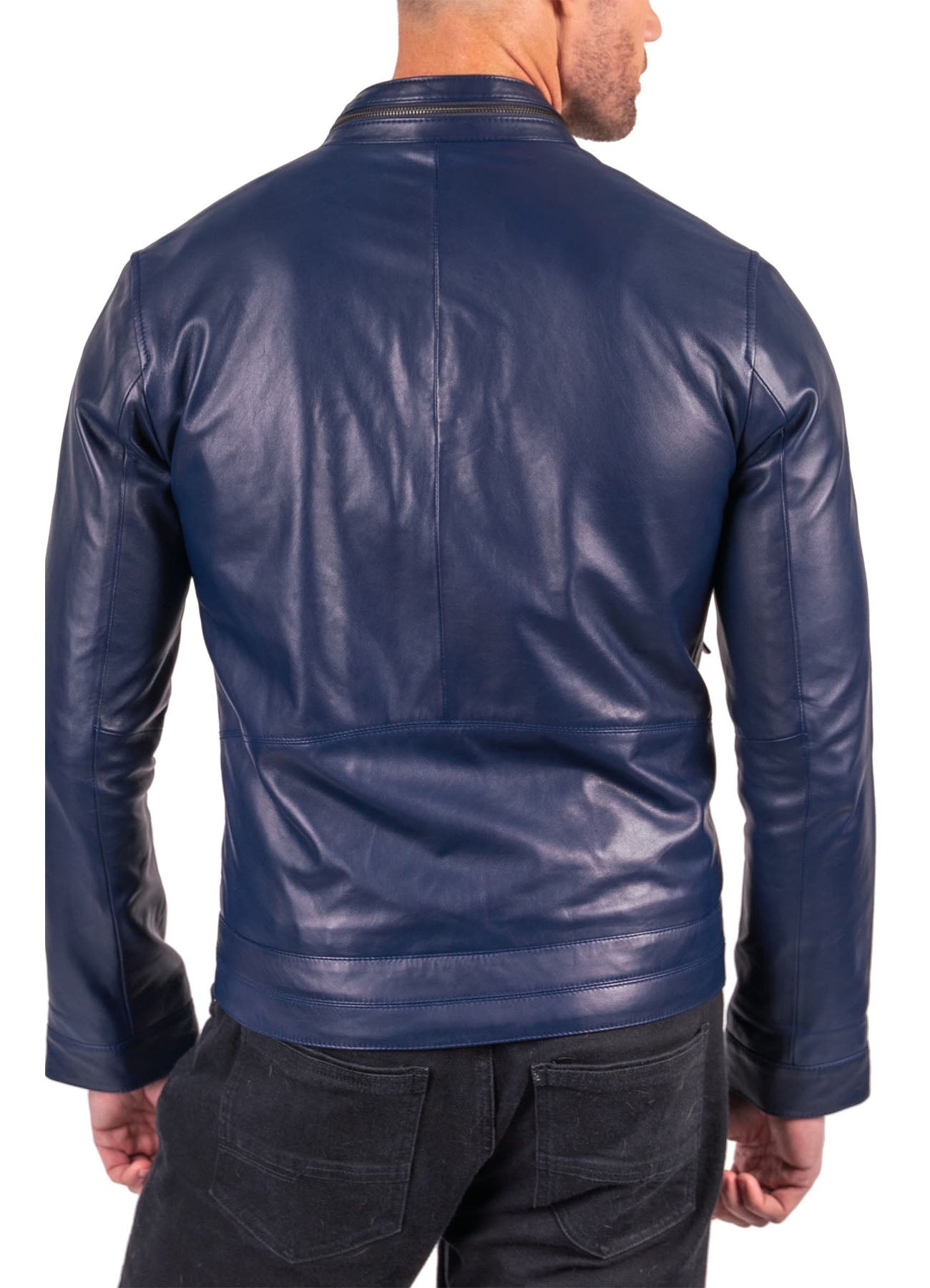 Mens Perfect Blue Lambskin Leather Jacket Sale