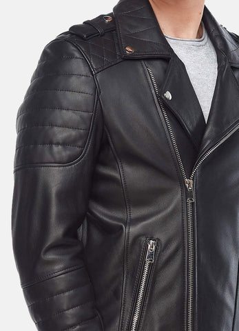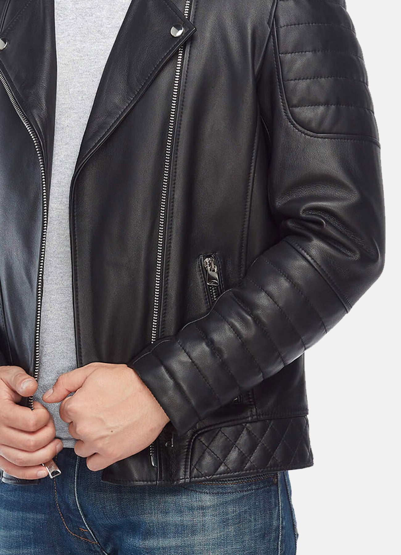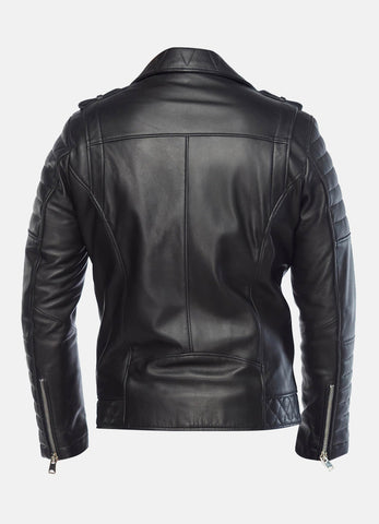 Mens Quilted Black Biker Leather Jacket - X-Small / Black
