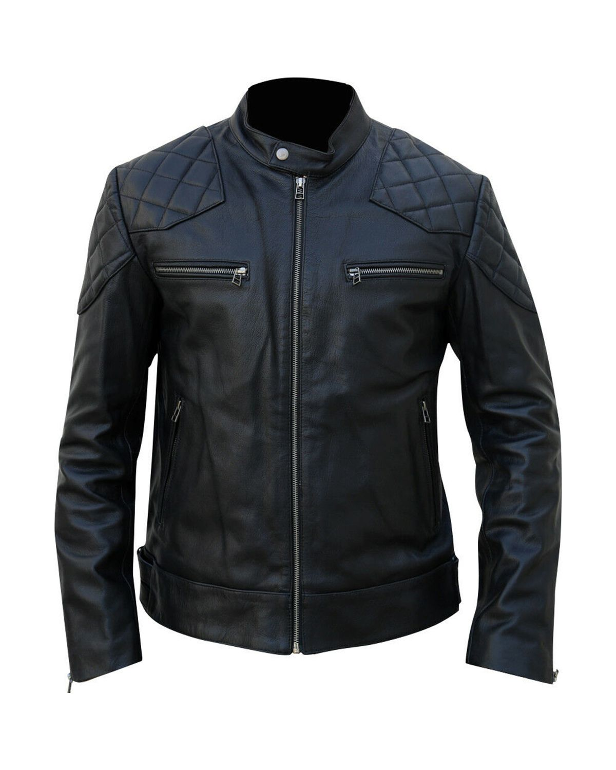 Elevate your wardrobe with our Black Leather Jacket, a versatile piece that's a must-have for stylish outfits. This jacket, designed for men, features quilted shoulders for a touch of rugged sophistication.