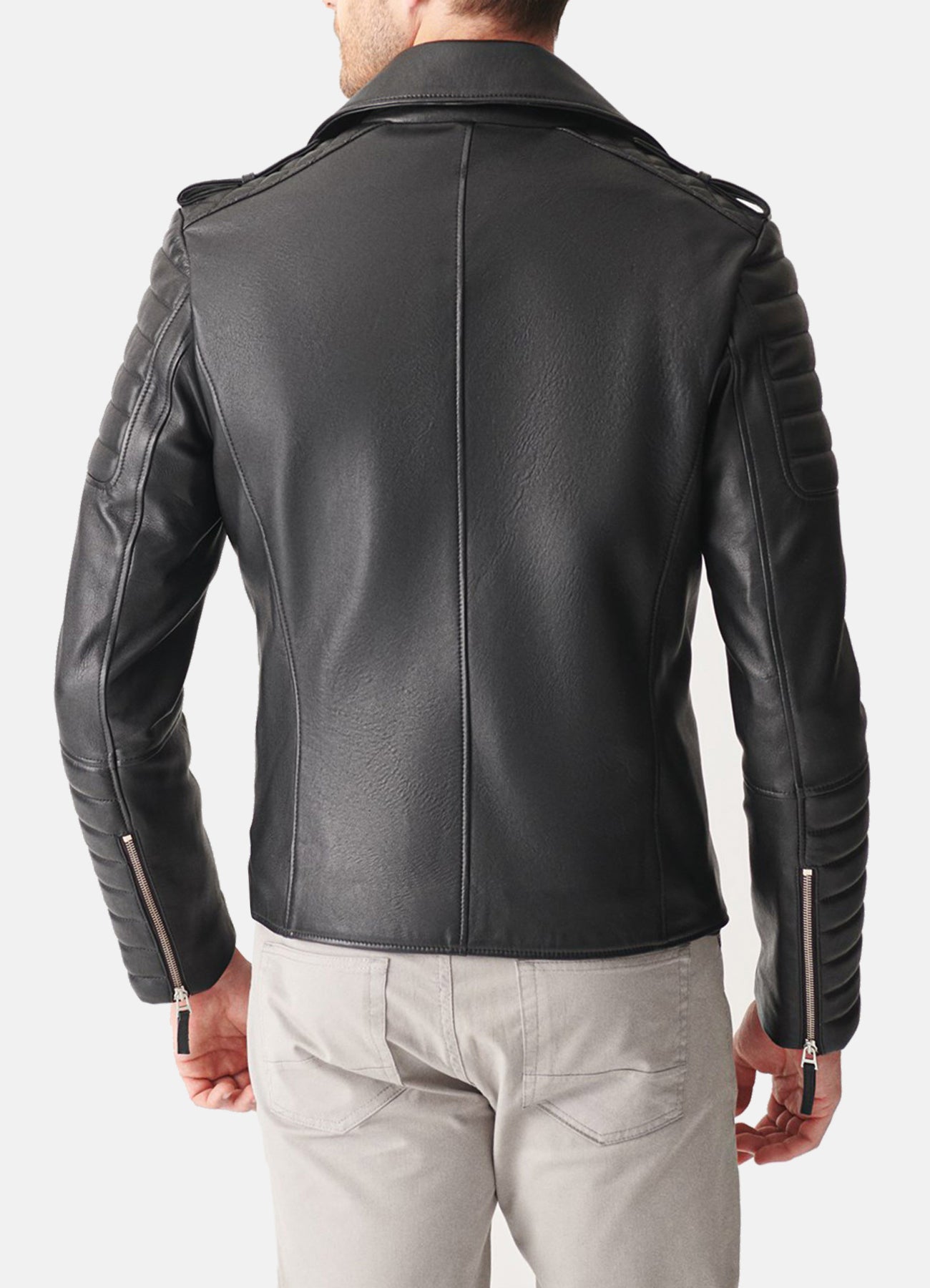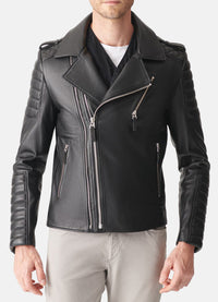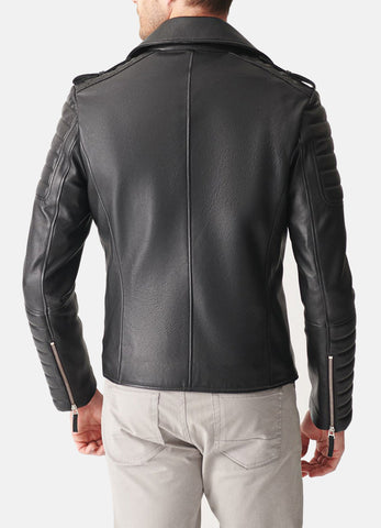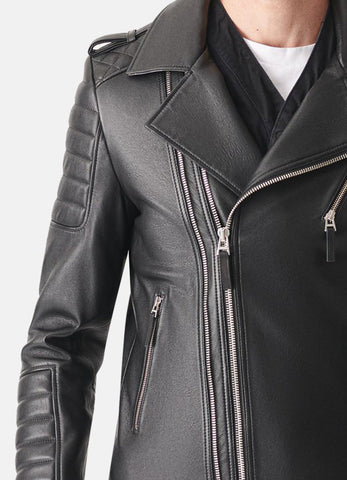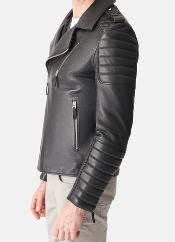 Mens Quilted Charcoal Black Biker Leather Jacket Sale