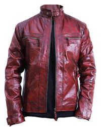The stand-up style collar adds a hint of sophistication to the jacket's overall appeal. With full-length sleeves and round cuffs, Maroon Cafe Racer Leather Jacket presents a sleek and polished silhouette. Complete with four outside pockets, this jacket offers both functionality and fashion-forward design. Elevate your wardrobe with this exceptional piece, designed to make a statement and enhance your personal style.