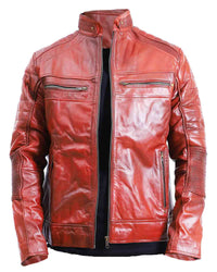 Mens Quilted Sheepskin Brown Leather Jacket Sale
